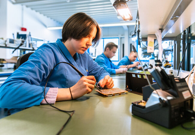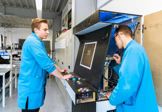 So bietet beispielweise die EDV die Möglichkeit Dich in einfachen Programmierprojekten zu versuchen, die Mechanische Werkstatt taucht mit Dir in die Materialbearbeitung ein und EGS + IE lassen Dich in der Lehrwerkstatt Deine ersten Lötversuche unternehmen.